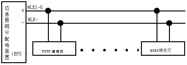 照明灯与应急照明分配电装置连接,实现应急状态照明的作用。应急照明分配电装置有多组端口,下图以第一组端口为例。